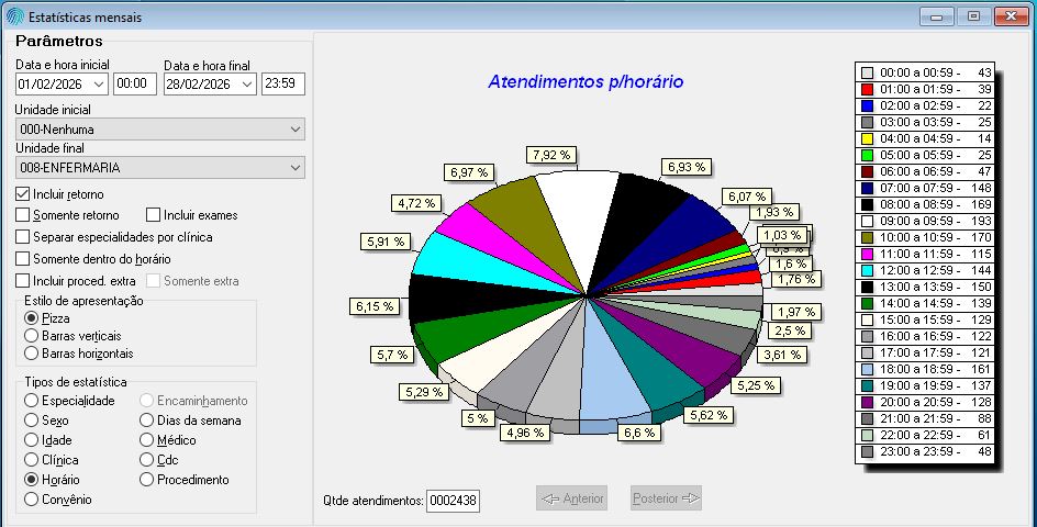 O horário de maior procura pelo pronto-socorro ocorreu entre 9h e 9h59, quando foram registrados 193 atendimentos.
