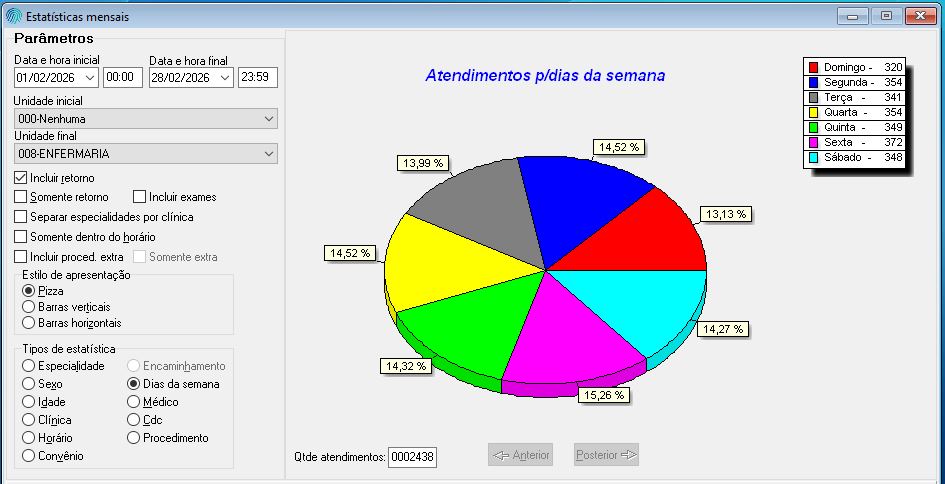 Já o dia com menor número de atendimentos foi o domingo, com 320 registros.